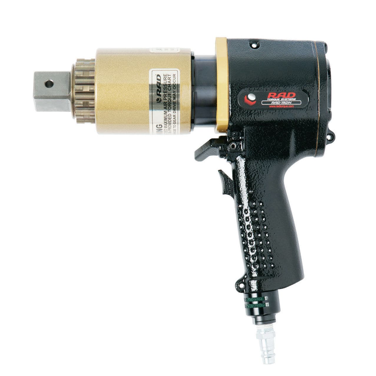 La clé dynamométrique pneumatique RAD 350SL fournit un couple de 50 à 350 lb-pi avec un entraînement carré de ¾ po. Sa conception légère et ergonomique à poignée pistolet, ainsi que sa vitesse élevée de 65 tr/min, la rendent idéale pour les services légers et l'assemblage en production. Dotée d'un système d'engrenage planétaire breveté, elle offre un excellent rapport puissance/poids, une précision de ±5 % et une répétabilité de ±2 %.