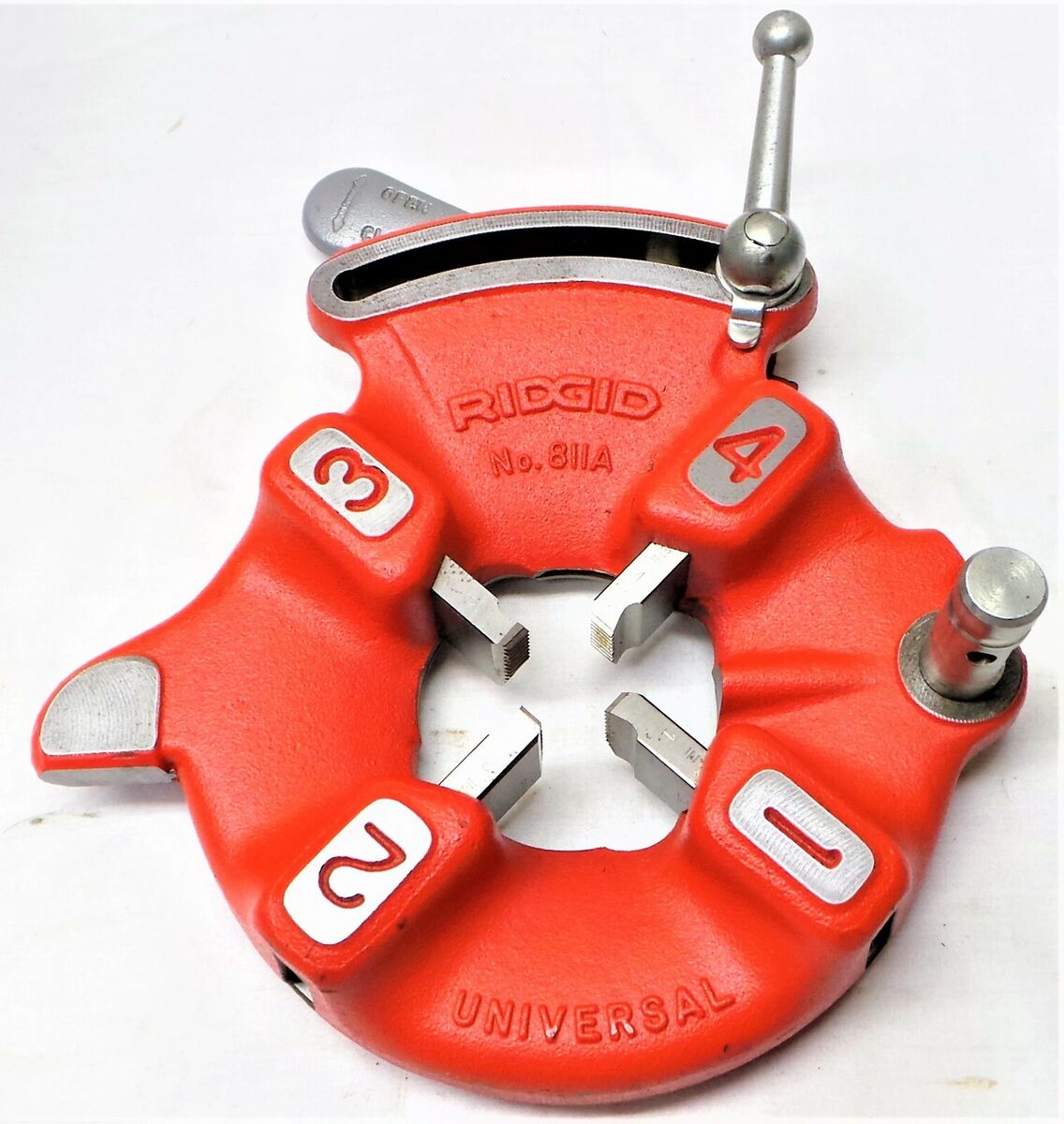 La tête de matrice à ouverture rapide RIDGID 811A (97065) couvre les tuyaux NPT de ⅛″ à 2″ et les boulons de ¼″ à 2″. Le levier rapide rétracte les matrices pour un changement de taille sans outil. Corps en fonte avec huile intégrée pour un filetage fluide. Compatible avec tous les taraudeuses électriques RIDGID, pèse environ 6 kg—conçue pour un filetage efficace et fiable sur chantier.