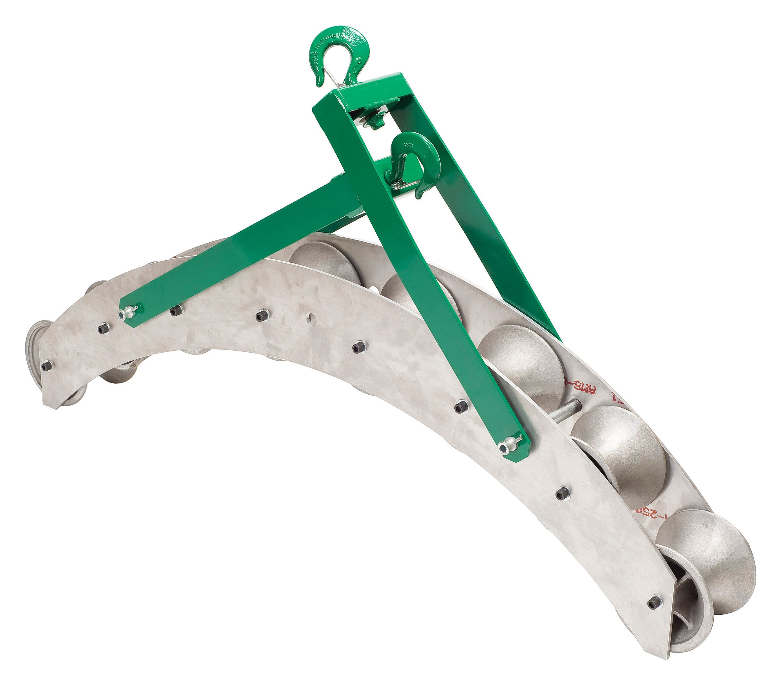 La poulie Greenlee 4036 de 36″ est dotée d’un cadre en acier soudé à structure aluminium avec huit galets en alliage d’aluminium de 5″ de largeur, de crochets de fermeture en acier moulé (ouverture 1″) et convient aux tire‑câbles avec une force maximale de traction jusqu’à 4 000 lb (≈ 17,8 kN).