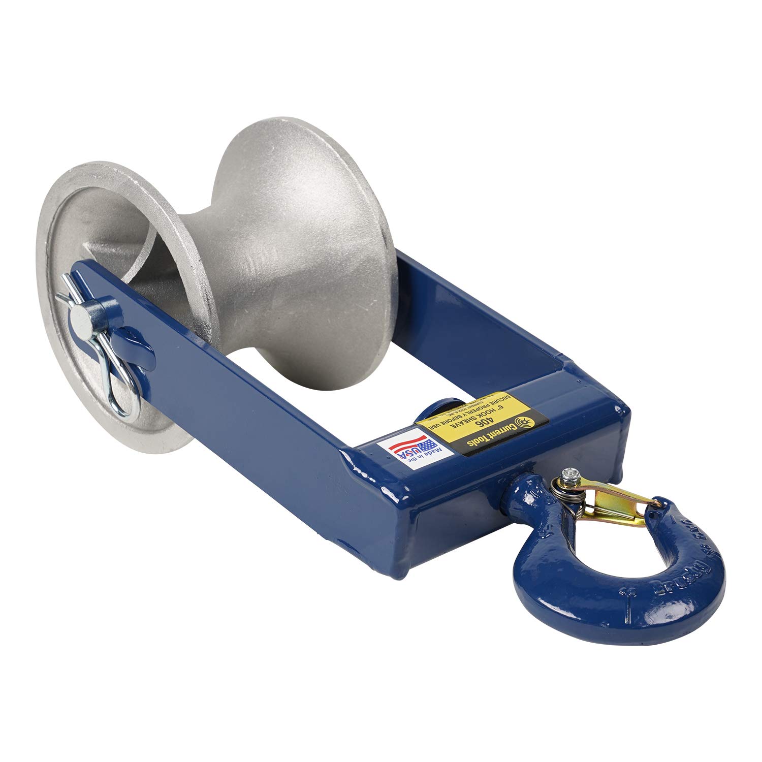 La poulie à crochet Current Tools 406 de 6″ de diamètre dispose d’un cadre soudé en acier et de crochets en acier forgé (ouverture de 1″). La poulie en aluminium de 5″ de large repose sur des roulements auto-lubrifiants et offre une capacité de 4 000 lb (≈ 17,8 kN). Parfaite pour guider les câbles lors de tirages dans des passages étroits.