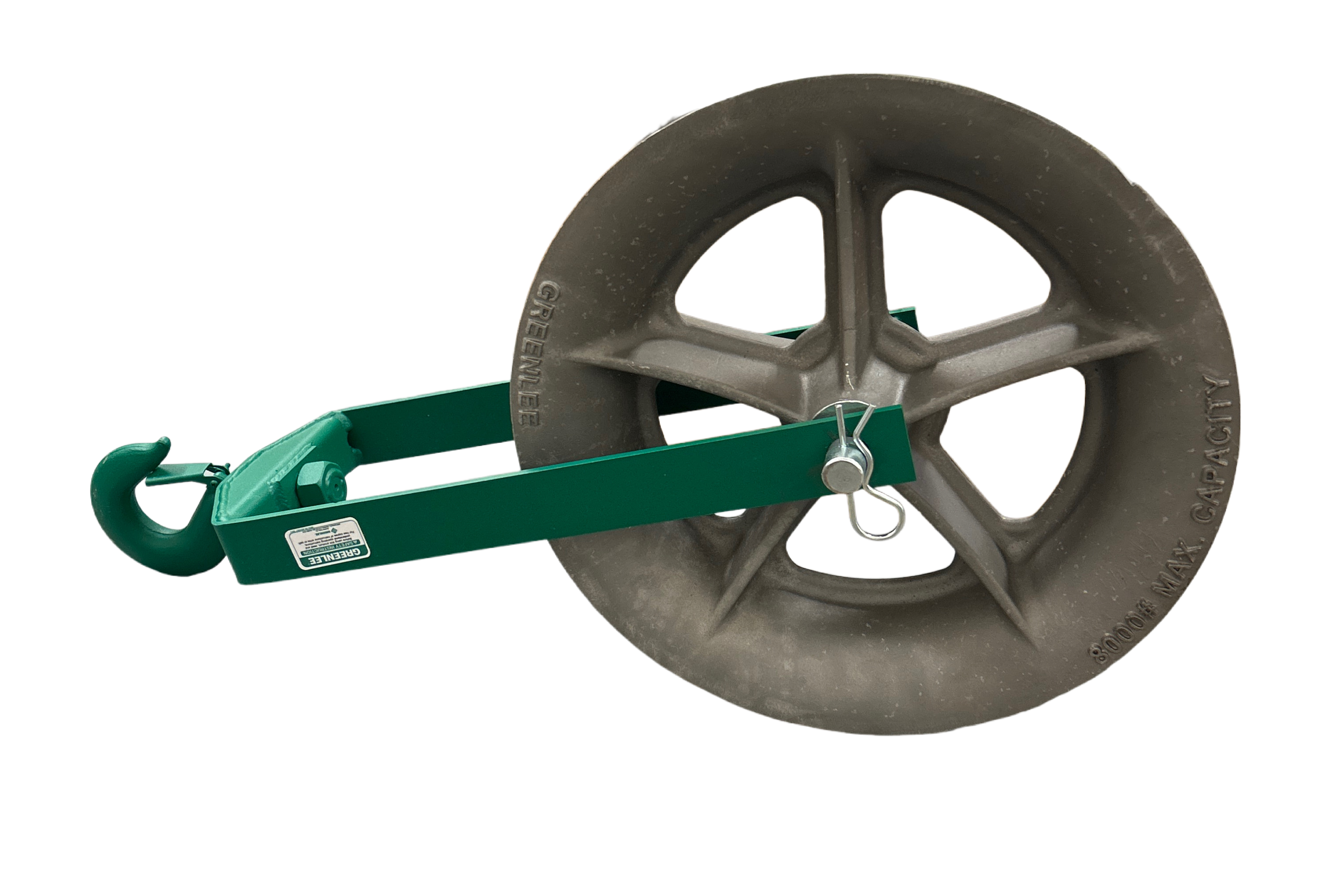 La poulie à crochet Greenlee 8018 présente un cadre soudé en acier, des crochets de fermeture en acier forgé (ouverture 1″) et une poulie de 18″ en alliage d’aluminium sur roulements auto-lubrifiants. Capacité de 8 000 lb (≈ 35,6 kN). Conçue pour les tire-câbles UT8, UT5, 6001, UT4 et UT2.