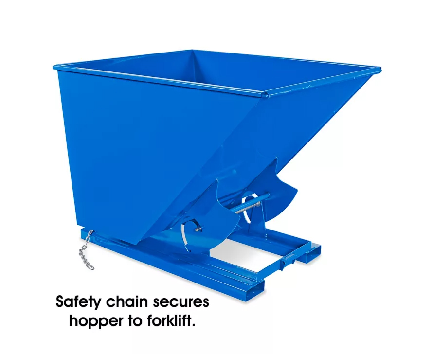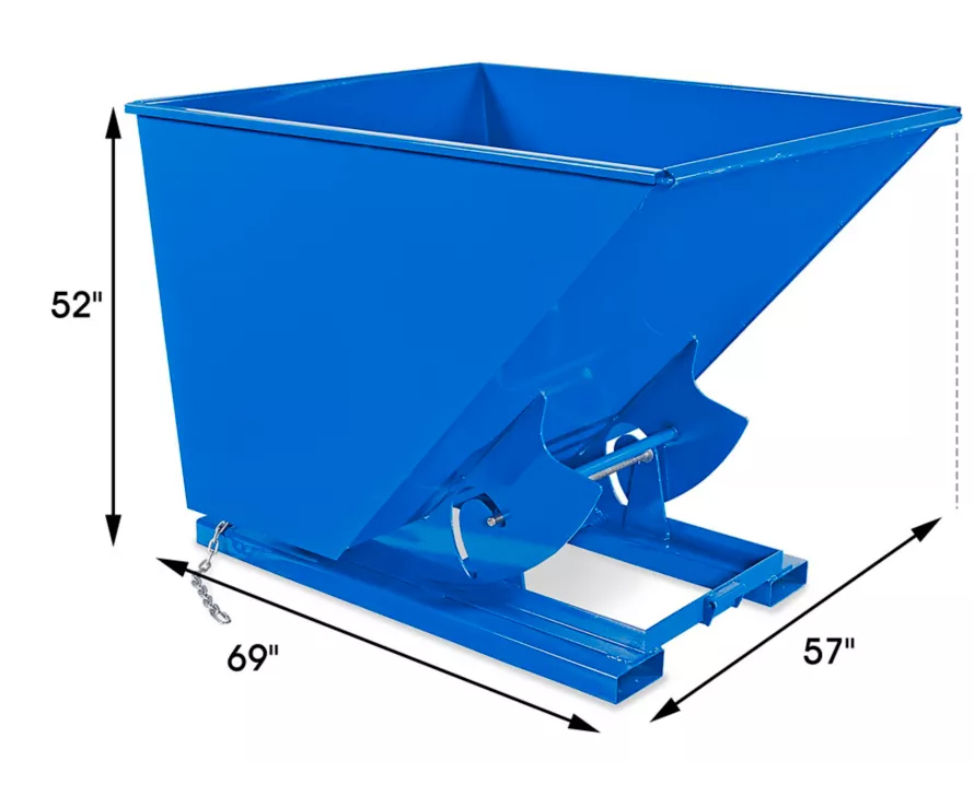 Le bac basculant pour chariot élévateur Hy-Cor de 2 verges cubes est un conteneur en acier polyvalent et robuste, conçu pour une manutention sécuritaire et efficace. Son mécanisme d'auto-basculement, activé par un loquet de sécurité et un levier, assure un vidage complet. Fabriqué en acier de calibre 10 et 7 avec des renforts, il offre une performance durable dans diverses conditions. Les dispositifs de sécurité comprennent un mécanisme de verrouillage et une chaîne de sécurité pour chariot élévateur.