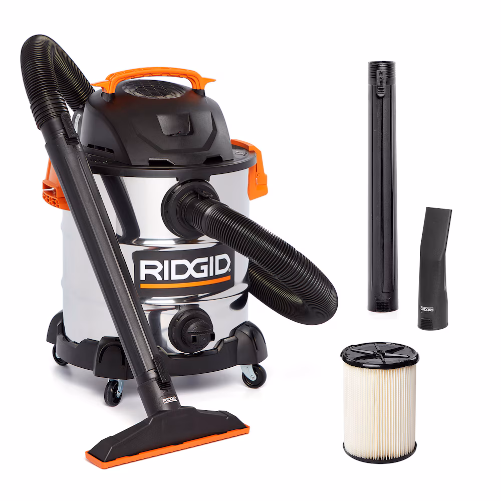 L’aspirateur RIDGID de 10 gallons en acier inoxydable est doté d’un moteur de 6 ch-pic pour une forte aspiration, d’un drain intégré pour évacuer les liquides, et d’un port souffleur pour dégager la poussière. Son système de filtre Qwik-Lock sans outil simplifie l’entretien. Il roule sur roulettes, stocke ses accessoires à bord et dispose d’un cordon de 15 pi pour une portée étendue.
