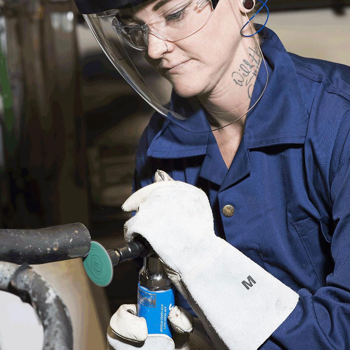 The JET MG90HD is a heavy-duty 90° air-powered die grinder with a ¼″ collet and 0.6 hp motor delivering up to 14,500 RPM. Rear exhaust and a compact 7.5″ housing ease work in tight spaces. Features durable cast-aluminum end plates, ball-bearing motor shaft, lever throttle, and air-inlet screen for extended life. Requires ≈ 5 CFM @ 90 psi air supply — ideal for industrial-grade grinding, deburring, and metal shaping.
