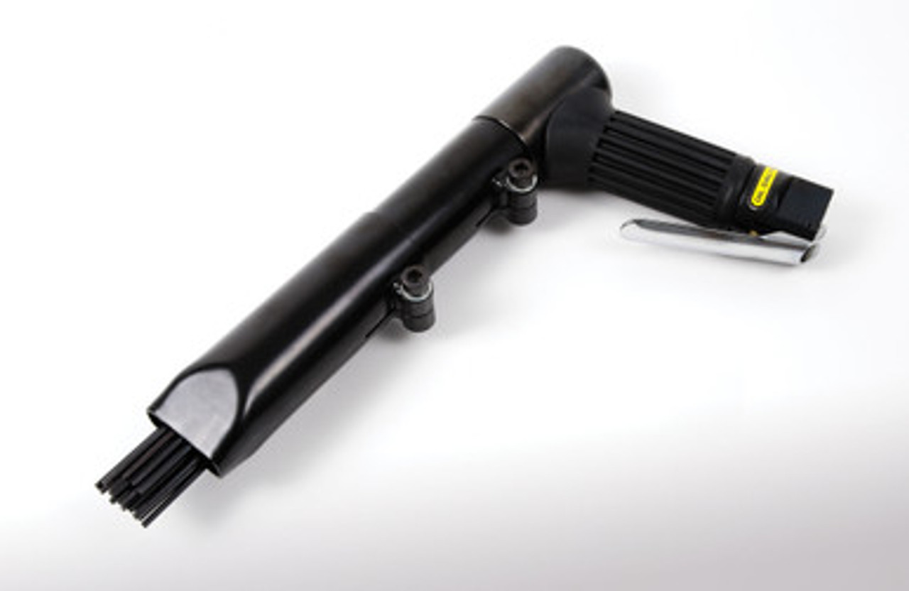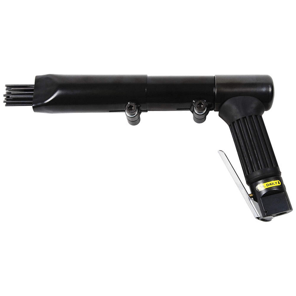The JET 404228 NS260P is a pistol‑grip pneumatic needle scaler delivering 3,700 blows/min with a 0.93" bore and 3" piston stroke. Compact 12.5″ overall, it excels at removing paint, rust, dirt or weld scale from irregular or curved surfaces and hard‑to‑reach areas. Includes a set of 19 needles and wrench, with lever‑throttle control — ideal for efficient surface prep on‑site.