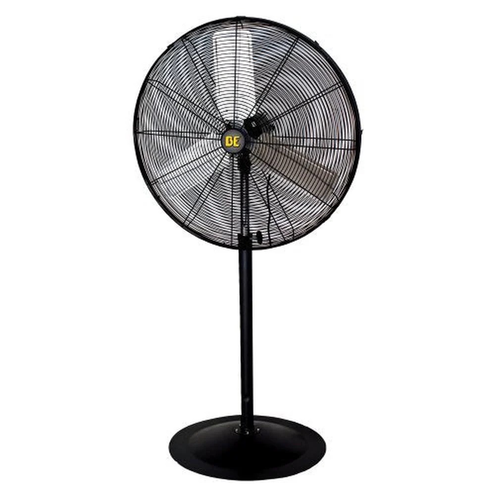 The BE 30″ Pedestal Fan FP30 delivers powerful airflow to keep large workshop, warehouse, or jobsite spaces ventilated. Built with a rugged steel frame, 30″ precision-balanced aluminum blades and a direct-drive 2-speed motor, it pushes high-volume air with low noise. Adjustable tilt and a sturdy pedestal stand make it easy to position for optimal cooling on tough jobsites.