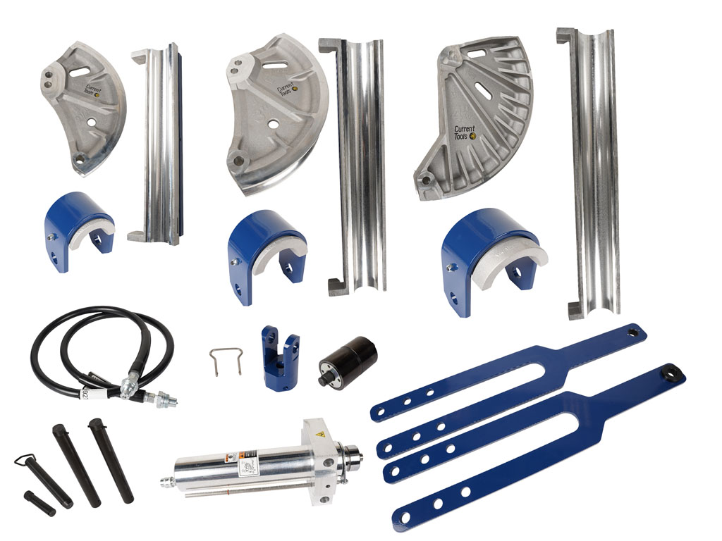 The Current Tools 254L hydraulic bender is designed for bending 2½″ to 4″ Rigid, EMT, and IMC conduit. Its rugged construction and high-capacity hydraulic system ensure consistent, accurate bends on the jobsite. Includes bending frame, cylinder, hose, and pump.