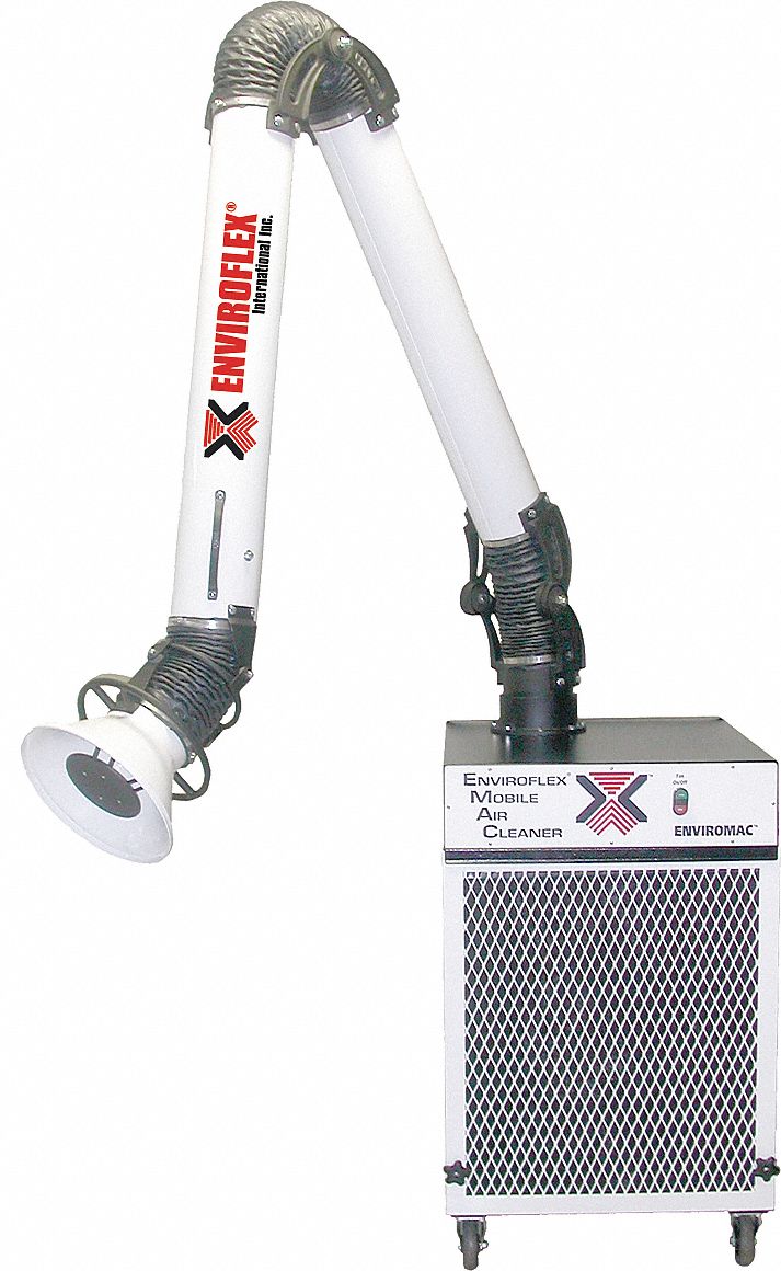 The ENVIROMAC™ Portable Welding Smoke Extractor is designed for both portable and fixed welding, dust, and oil mist applications. It captures contaminants at the source, offering maximum protection by preventing pollutants from entering the operator's breathing area. The unit also recycles clean air back into the building, reducing additional heating or cooling costs.